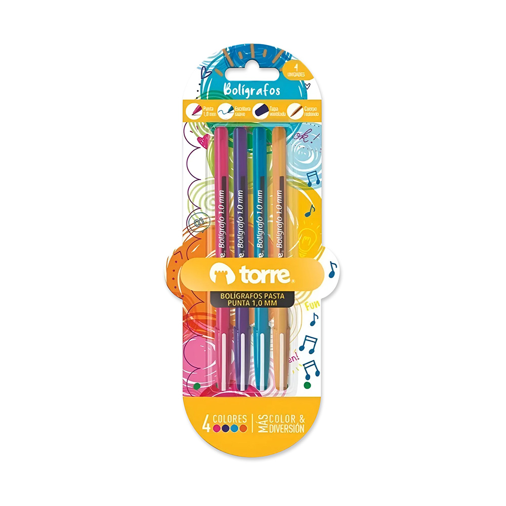 Set 4 Bolígrafos 1,0mm Color Fun Torre